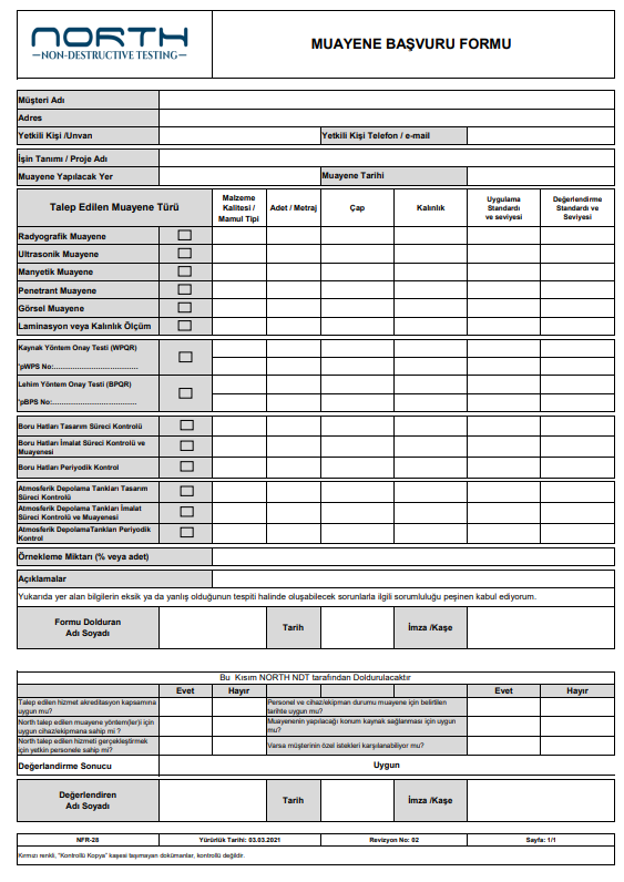NFR-28 Muayene talep formu